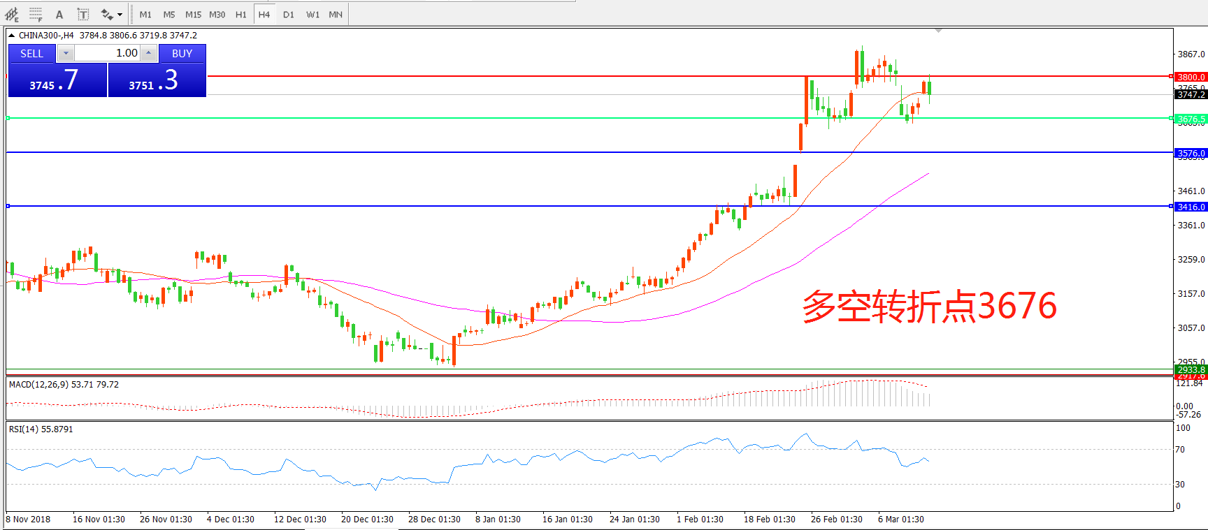 中华指数300CHINA3004小时图