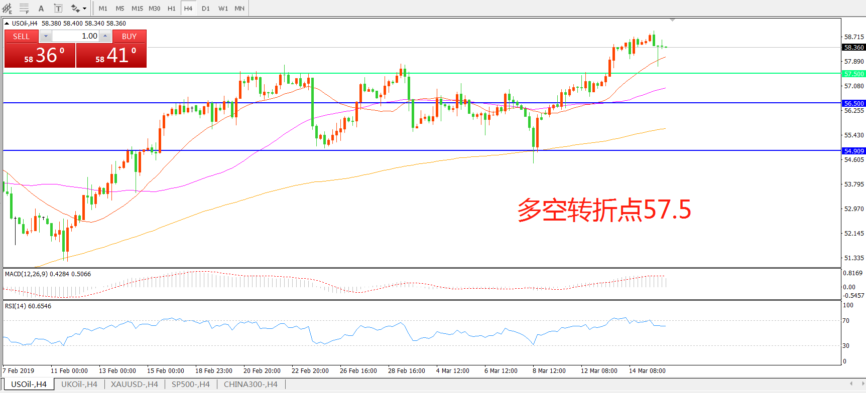 多空转折点:57.50