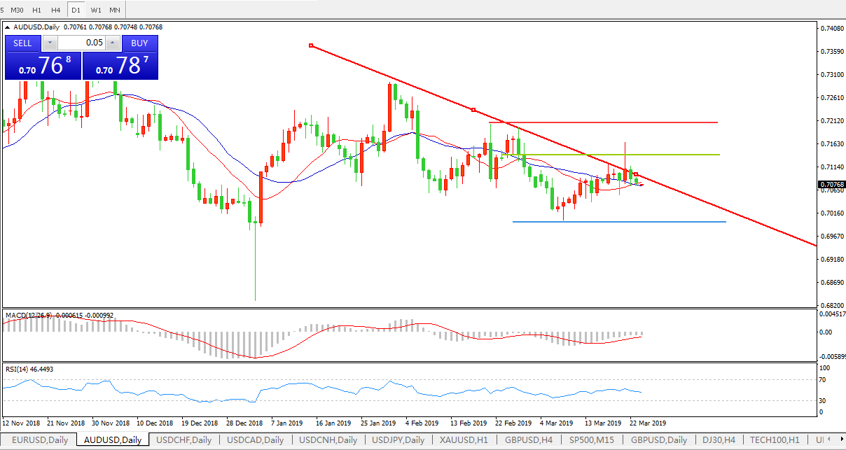 交易策略:在0.7140之下,看跌,目标价位为0.6990,然后为0.6940。