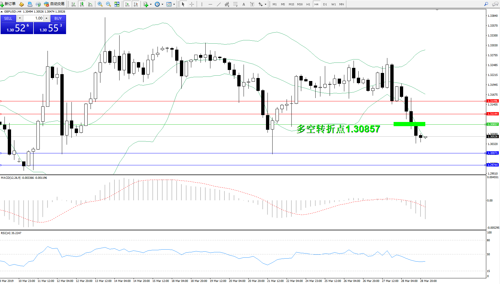 交易策略:1.30857下方看跌,目标1.30071、1.29744