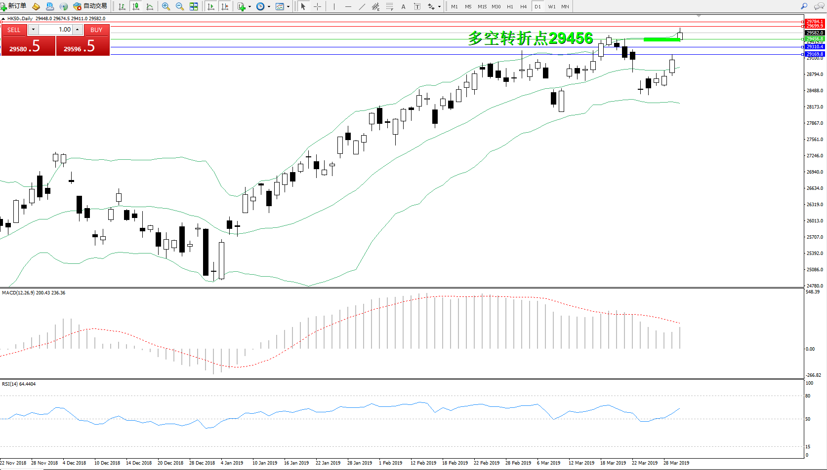 得益于中国制造业活动回升,亚洲股市全线大涨,其中中国内地股市领涨亚太市场,深成指升破10000点,创20186月以来新高,香港恒生指数高开后维持高位窄幅震荡,截至收盘,恒指涨1.73%,报29,554.74点。3月财新中国制造业PMI录得50.8,高于预期的49.9。同时,据中国国家统计局周日公布的数据,中国官方3月制造业PMI2月的三年低点49.2升至50.5,四个月来首次重返枯荣线上方。该指数的读数在50.0荣枯线之上表示行业扩张,低于该数值则表示收缩。同时,中国下调增值税税率,其中制造业等行业原有16%增值税率降为13%,交通运输、建筑、房地产等行业现行10%税率降为9%