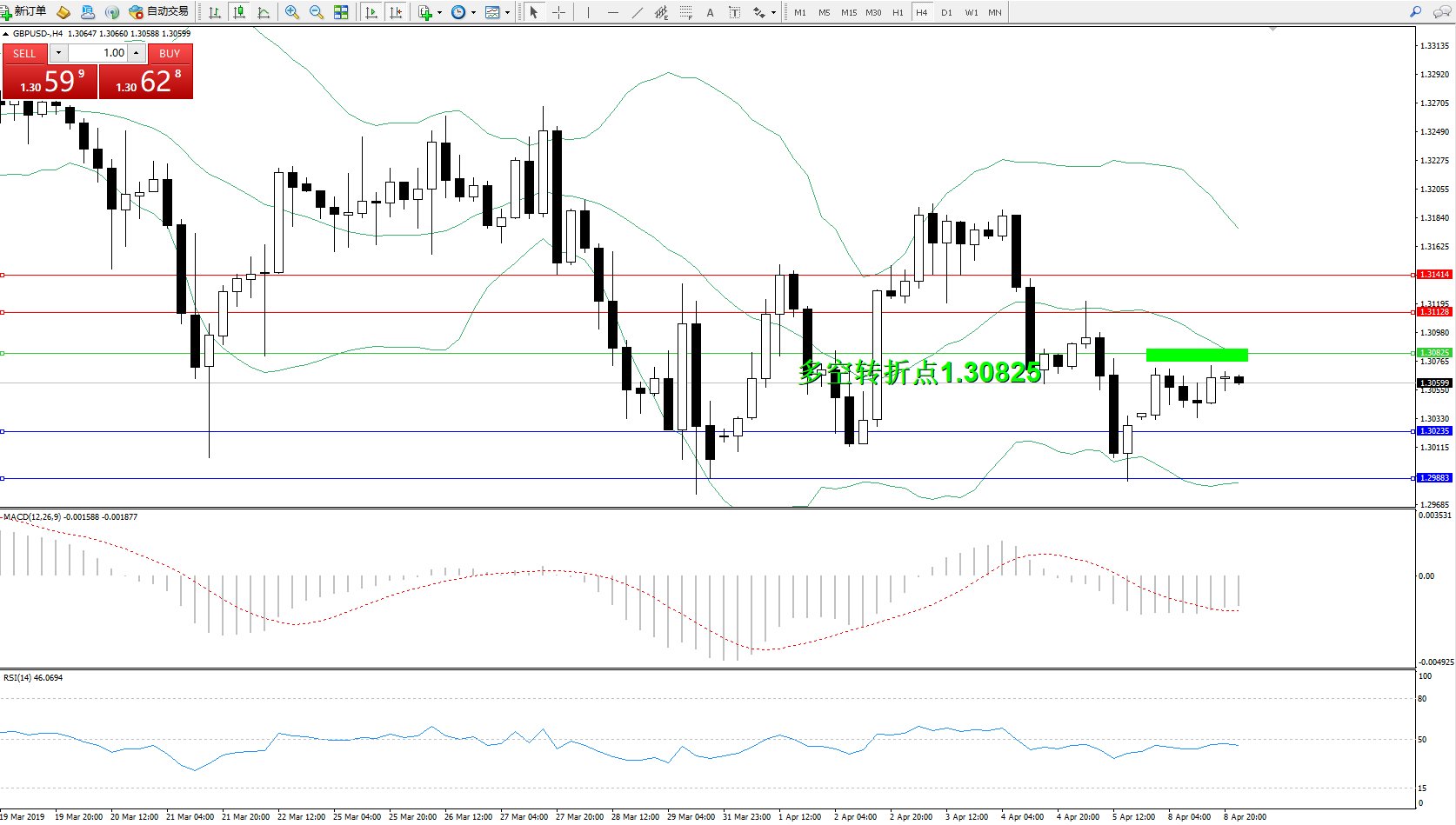 交易策略:1.30825下方看跌,目标1.30235、1.29883