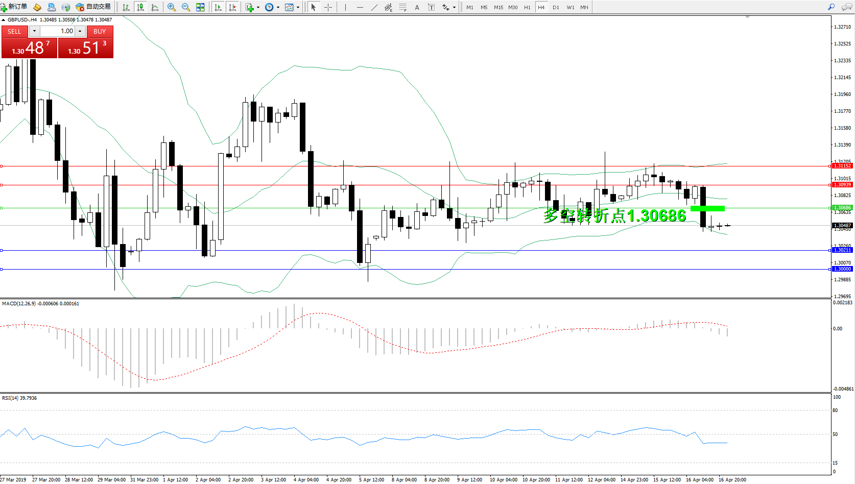 交易策略:1.30686下方看跌,目标1.30211、1.30000