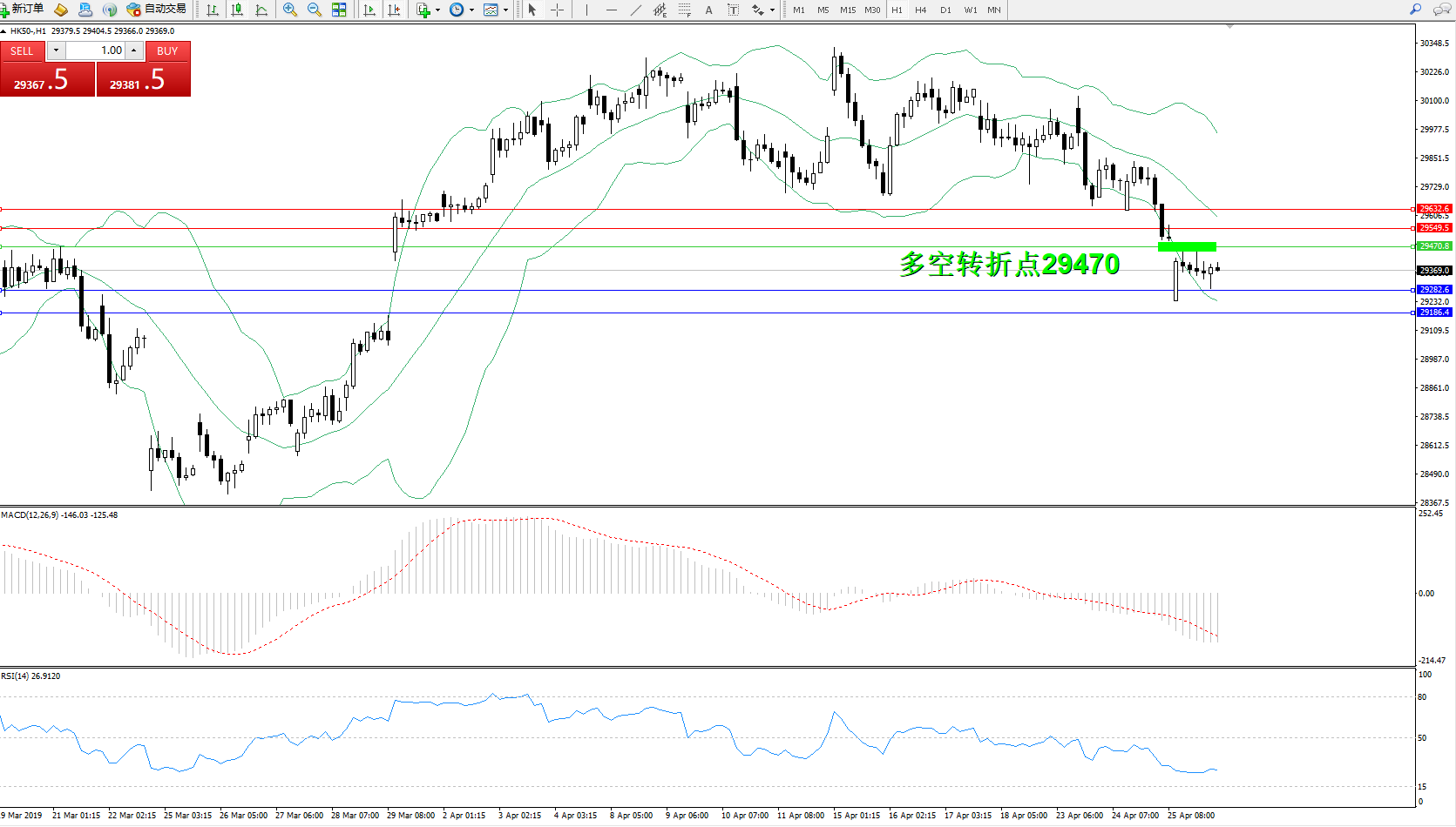 恒指HK50 ——1小时K线图显示: