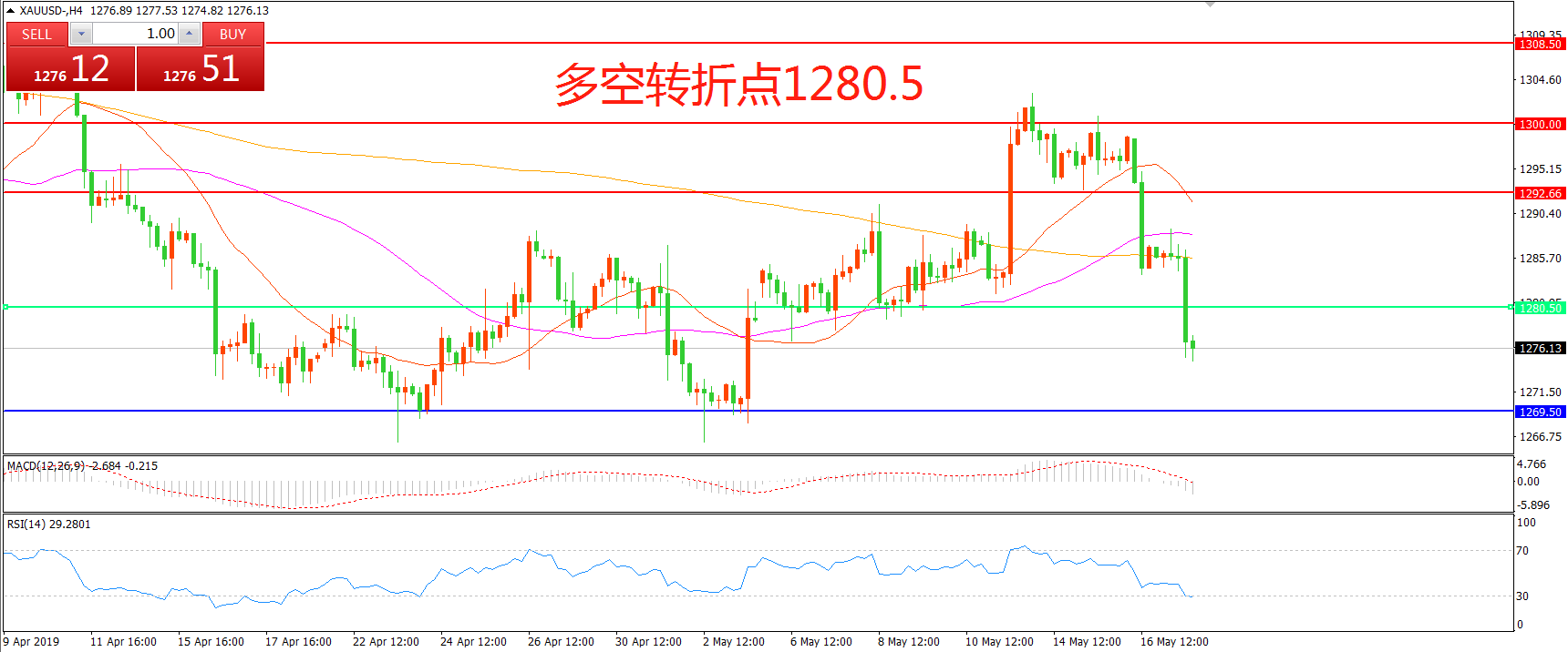 多空转折点:1280.50