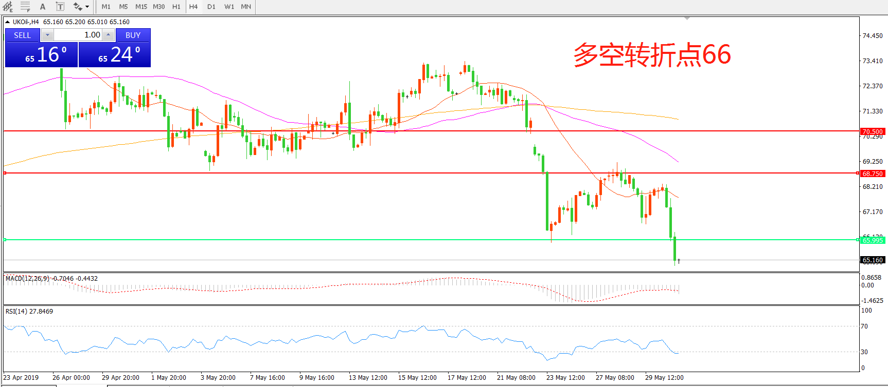 交易策略: 在66.00 之下看跌,目标64.50   61.50