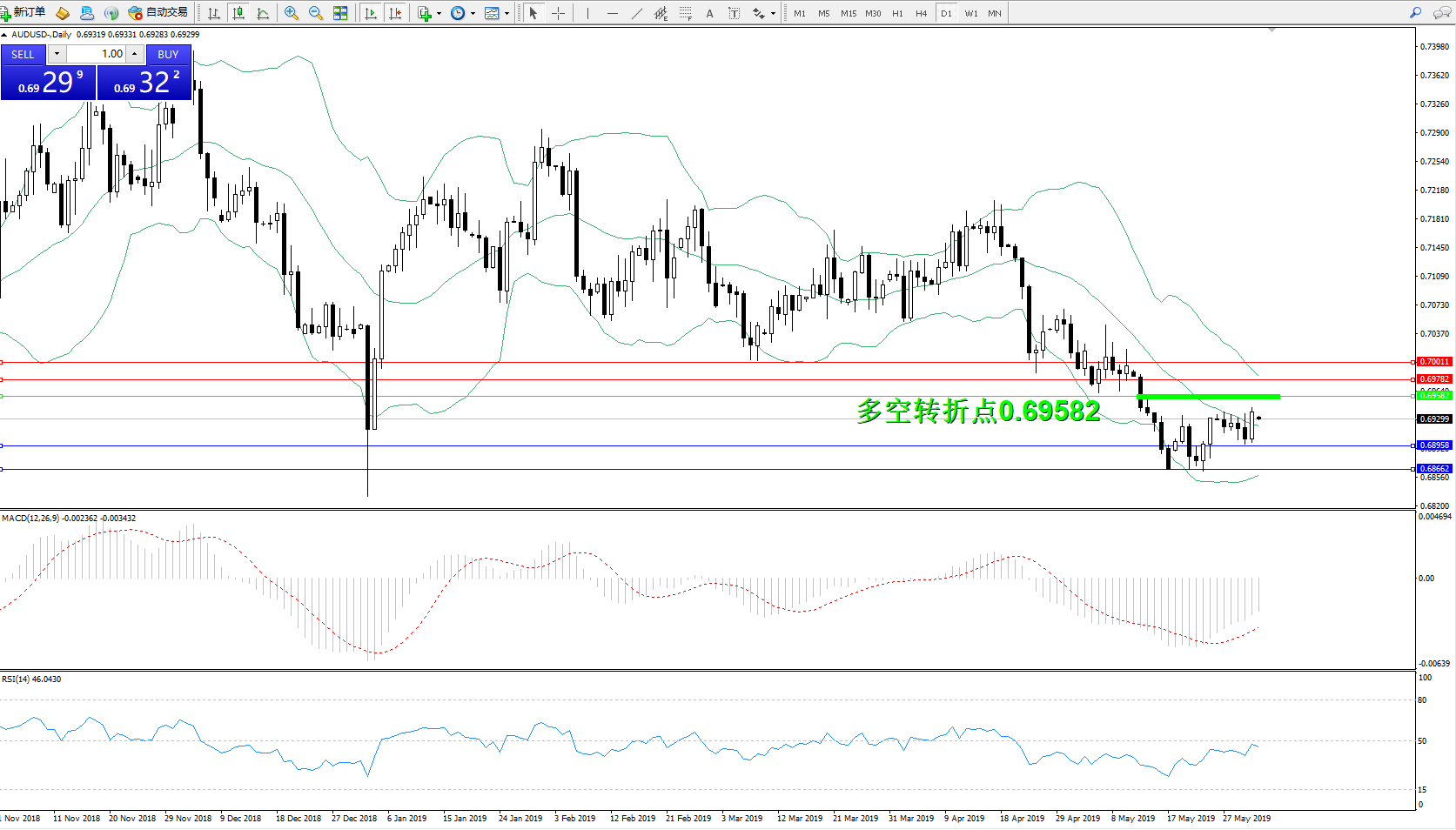 交易策略:0.69582下方看跌,目标0.689580.68662