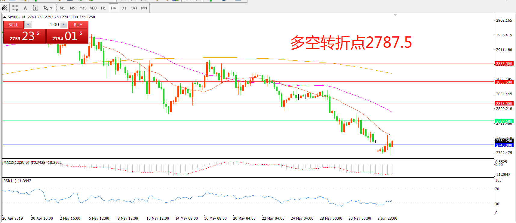 多空转折点:2787.50
