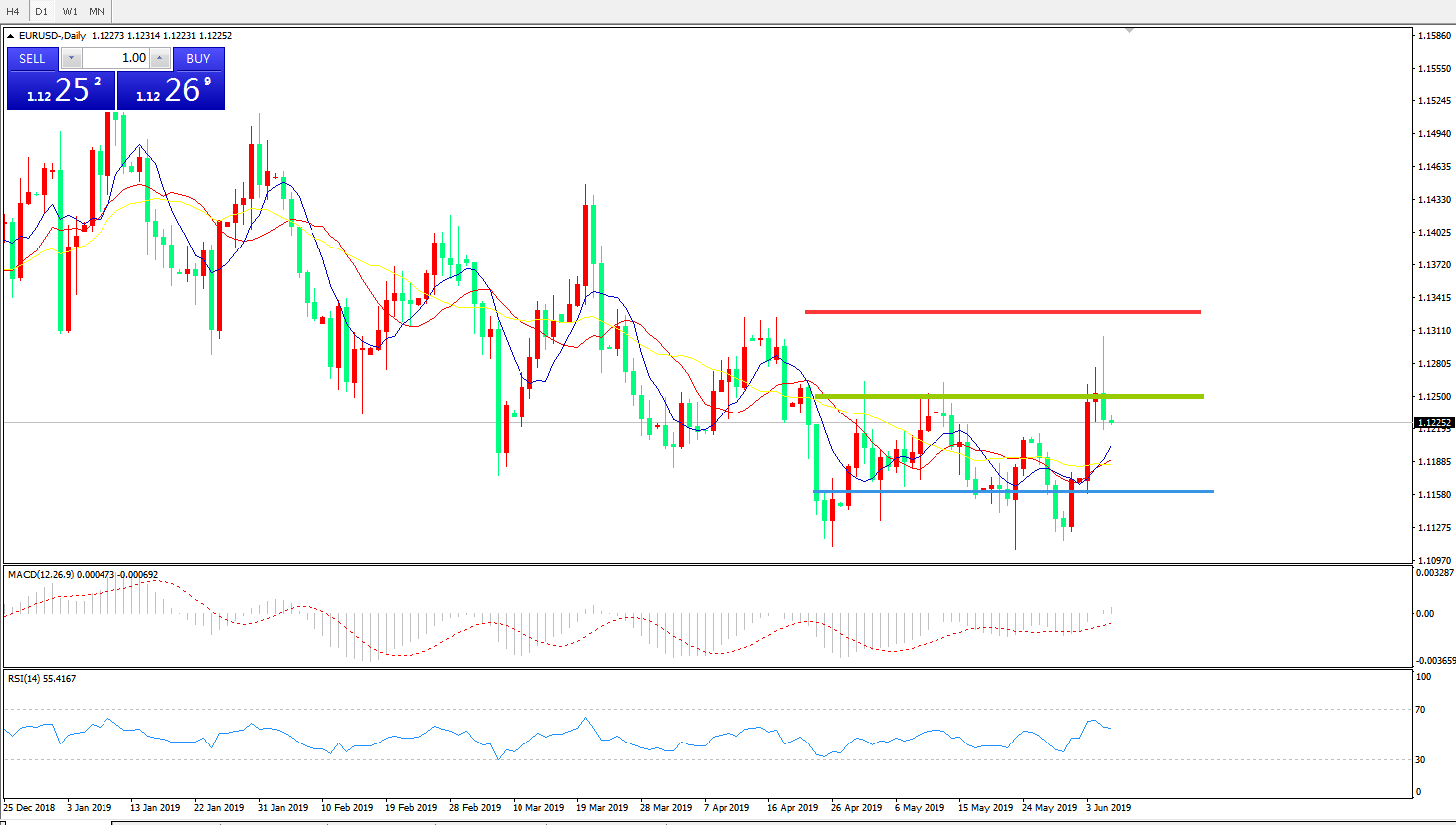 欧元美元EURUSD——日K线图显示: