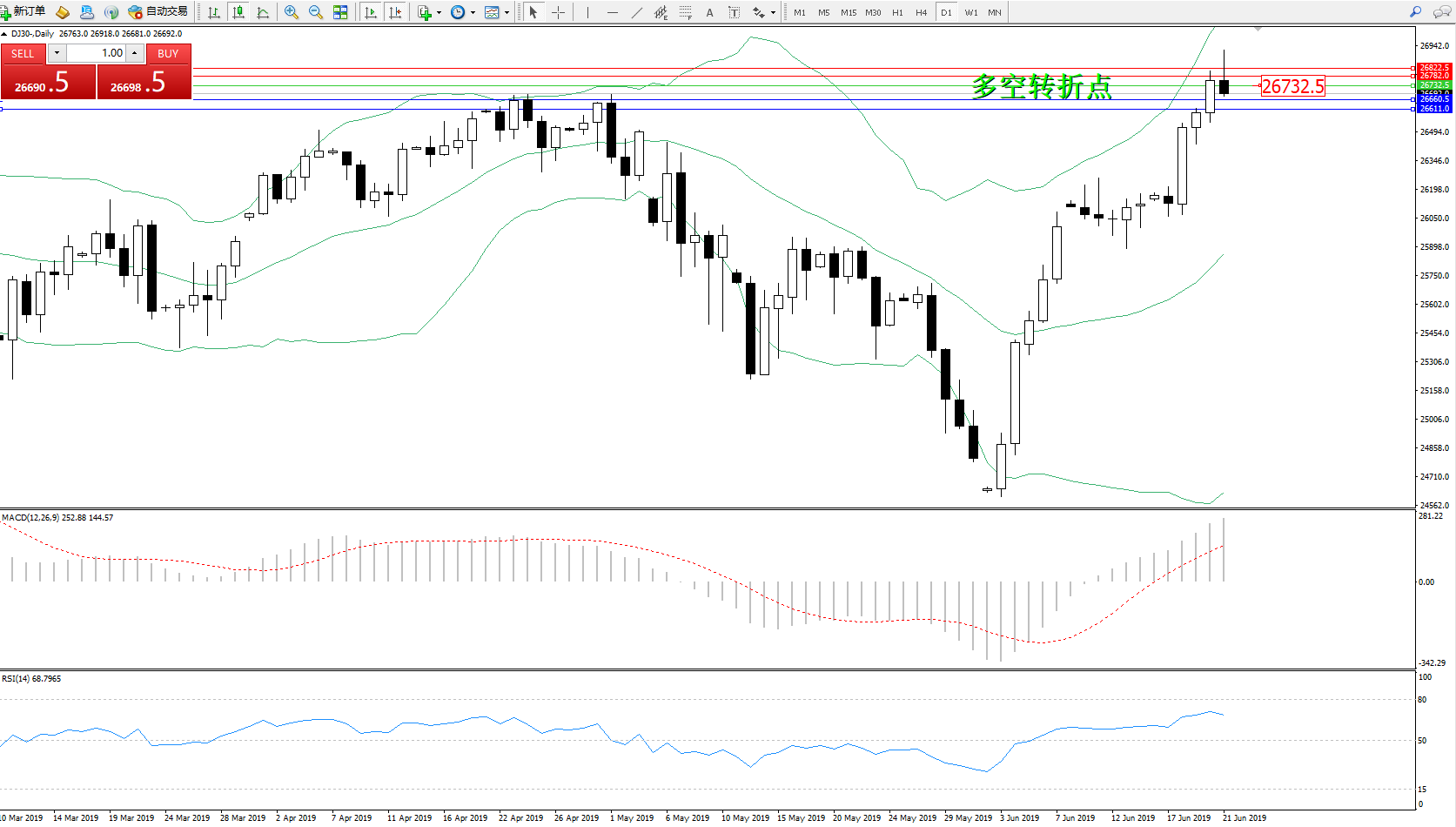技术点评:多头上扬态势里良好,突破前期高位后维持布林带上轨内侧持续上行,多头仍处于强势中,MACD指标多头区域持续拉升,RSI指标多头区域出现疲软迹象;