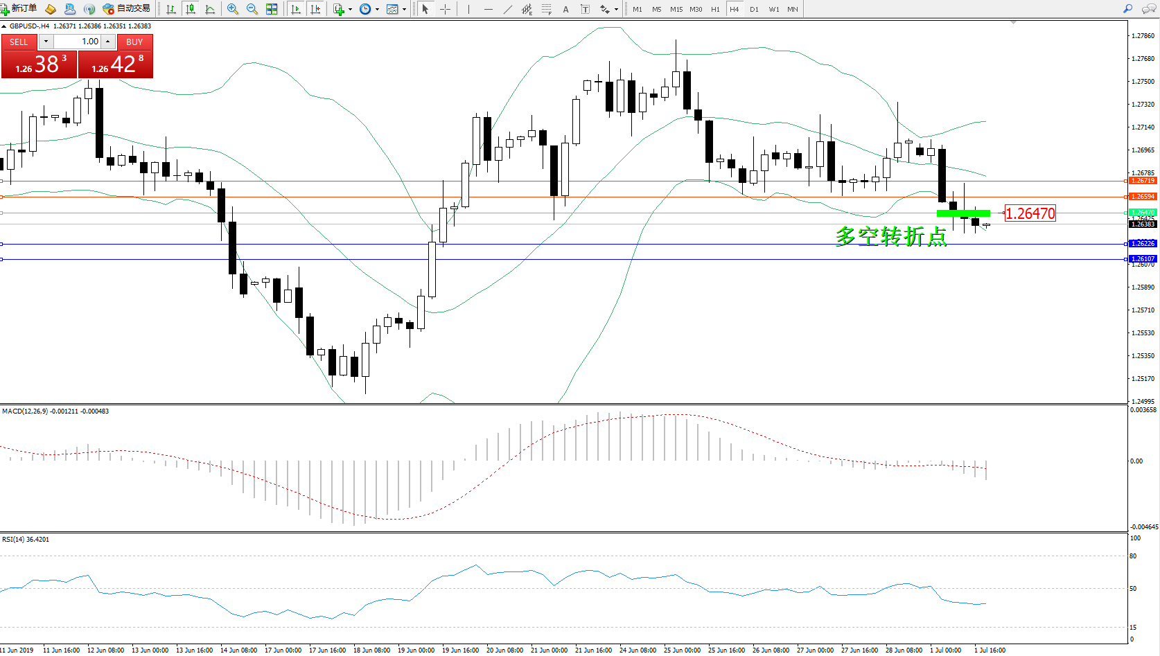交易策略:1.26470下方看跌,目标1.26226、1.26107