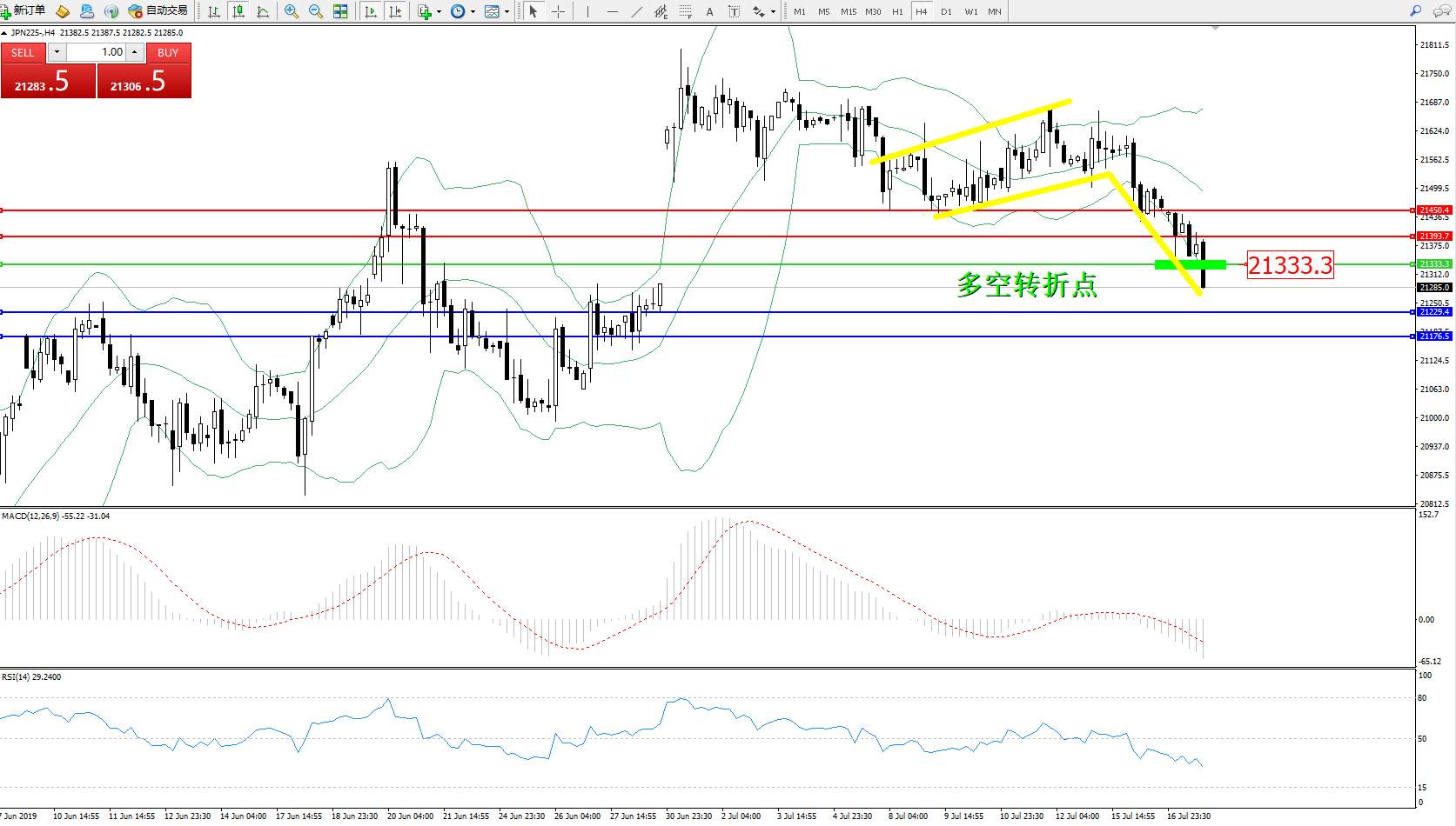 日经指数JPN225——4小时K线图: