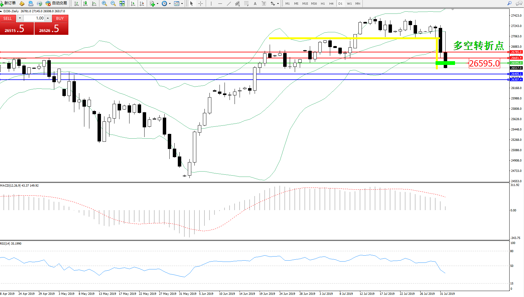 道琼斯指数8月1日(周四)收盘下跌280.90点,跌幅1.05%,报26583.42点。美联储在预期经济可持续扩张的情况下依然降息,下一次估计可能在9月;中美商贸谈判再次不欢而散,美国总统特朗普有关贸易关系的言论搅动了金融市场,贸易局势恶化使市场担忧全球经济放缓风险增大。在美联储昨天做出决定后,特朗普很快就在推特上表达了他的反对,所以他越过界限,又搞起了贸易争端。