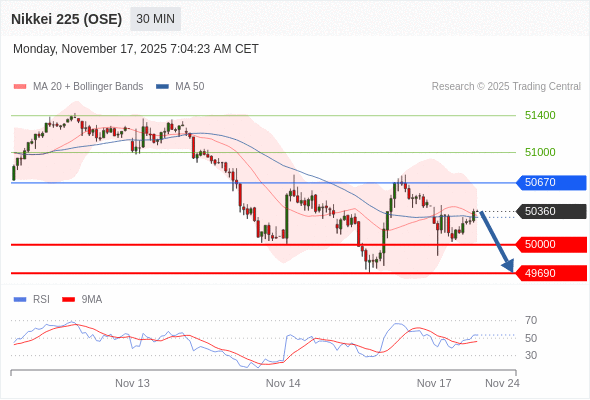 日经225股指期货 (OSE) 当日内: 短期关键阻力位在50670。