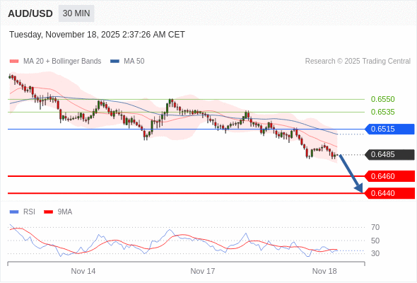 在 0.6515 之下,看跌,目标价位为 0.6460 ,然后为 0.6440 。