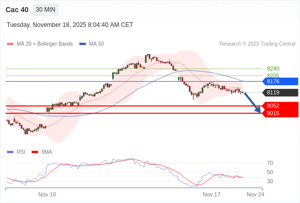 Cac 40 当日内: 短期关键阻力位在8176。