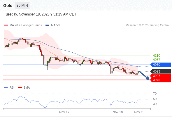 在 4060 之下,看跌,目标价位为 3997 ,然后为 3975 。