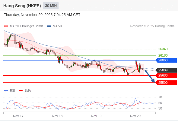 在 26060 之下,看跌,目标价位为 25680 ,然后为 25500 。