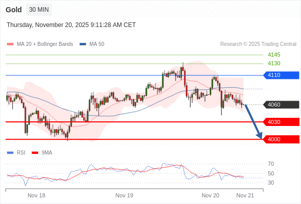 在 4110 之下,看跌,目标价位为 4030 ,然后为 4000 。