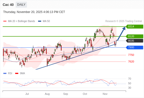 在 7900 之上,看涨,目标价位为 8120 ,然后为 8314 。
