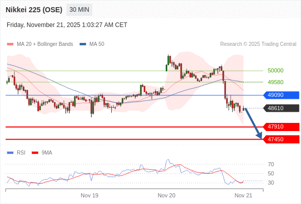 在 49090 之下,看跌,目标价位为 47910 ,然后为 47450 。