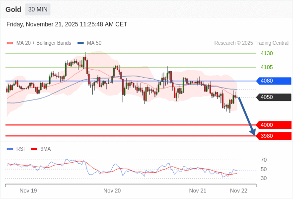 在 4080 之下,看跌,目标价位为 4000 ,然后为 3980 。