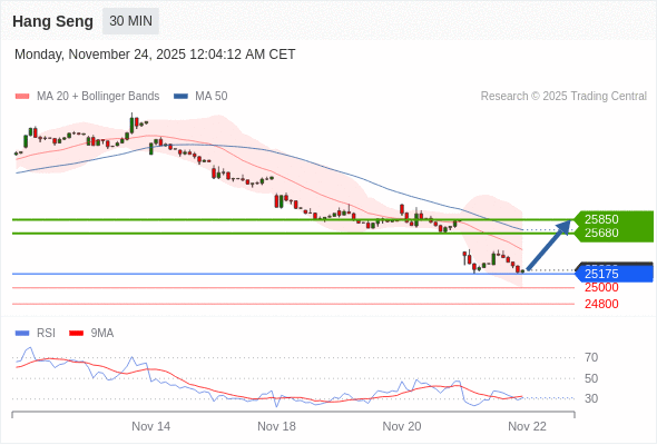在 25175 之上,看涨,目标价位为 25680 ,然后为 25850 。