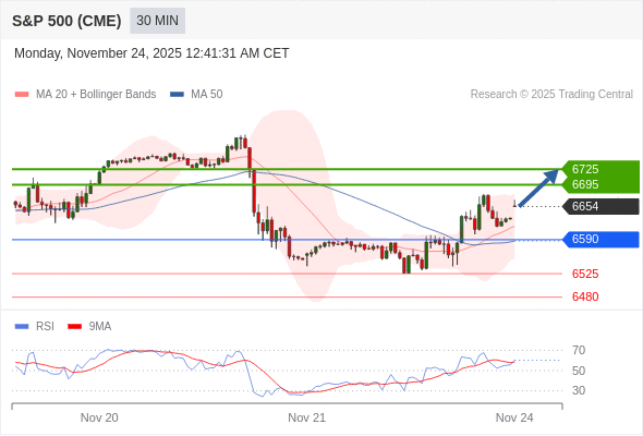 在 6590 之上,看涨,目标价位为 6695 ,然后为 6725 。