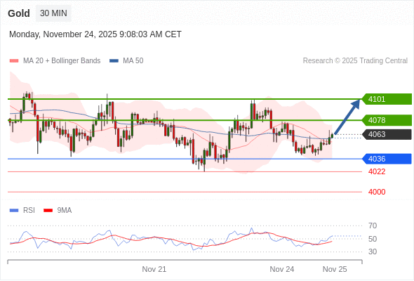 在 4036 之上,看涨,目标价位为 4078 ,然后为 4101 。