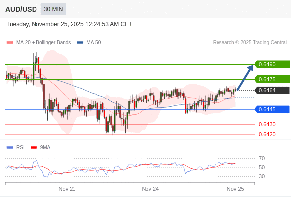 在 0.6445 之上,看涨,目标价位为 0.6475 ,然后为 0.6490 。