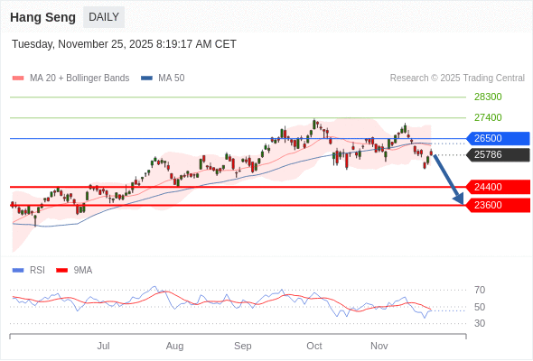 恒生指数 短线: 短期关键阻力位在26500。