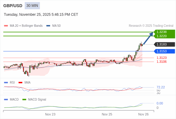 交易策略: 看涨,当 1.3153 为支撑位。