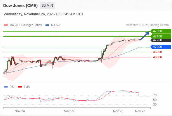在 47000 之上,看涨,目标价位为 47400 ,然后为 47600 。