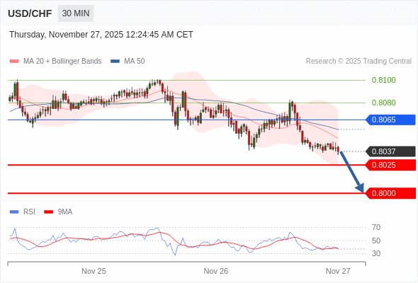 交易策略: 在 0.8065 之下,看跌,目标价位为 0.8025 ,然后为 0.8000 。