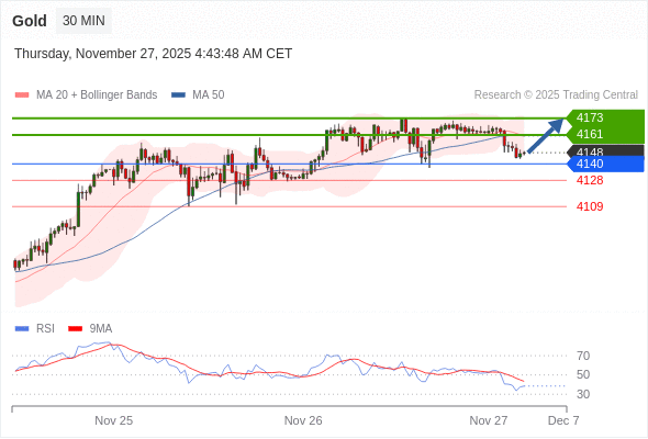 在 4140 之上,看涨,目标价位为 4161 ,然后为 4173 。