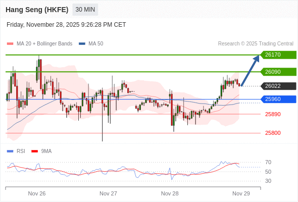 在 25960 之上,看涨,目标价位为 26090 ,然后为 26170 。