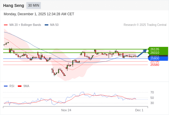 恒生指数 当日内: 超短线(当日内)支撑位在25800附近。