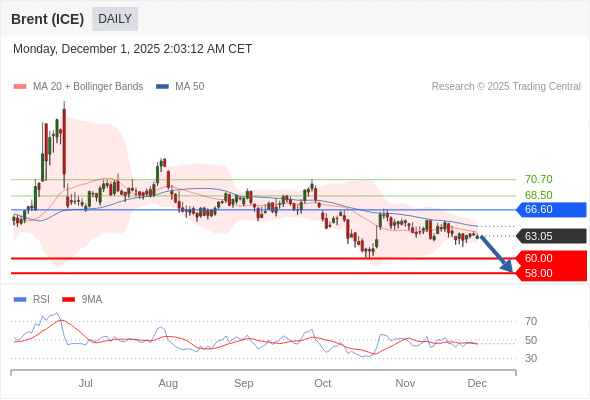 在 66.60 之下,看跌,目标价位为 60.00 ,然后为 58.00 。