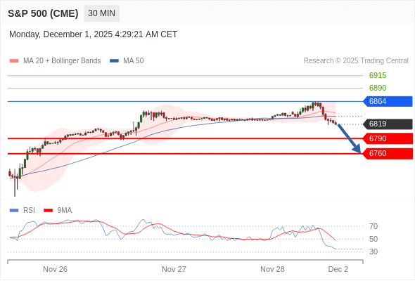 在 6864 之下,看跌,目标价位为 6790 ,然后为 6760 。