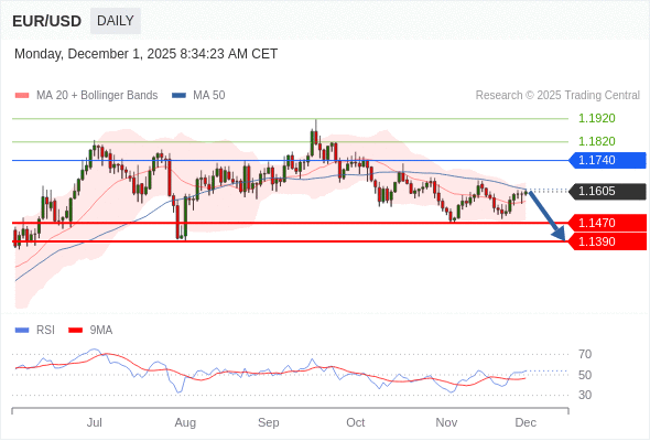 交易策略: 在 1.1740 之下,看跌,目标价位为 1.1470 ,然后为 1.1390 。
