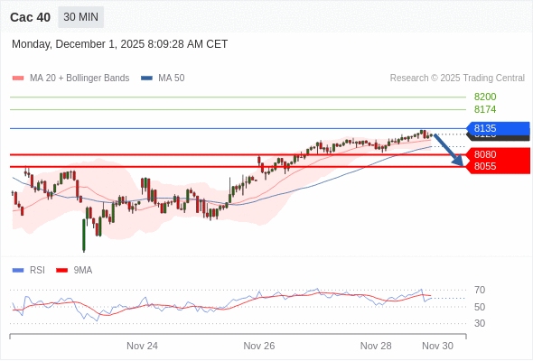 在 8135 之下,看跌,目标价位为 8080 ,然后为 8055 。