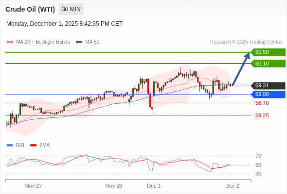 在 59.00 之上,看涨,目标价位为 60.10 ,然后为 60.50 。