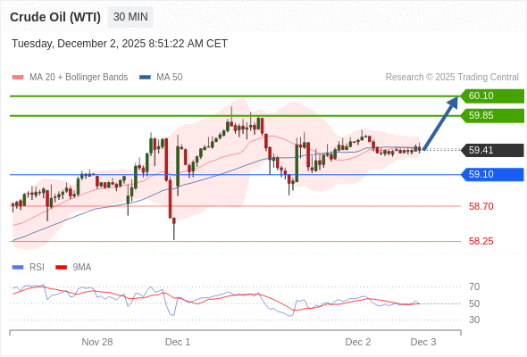 在 59.10 之上,看涨,目标价位为 59.85 ,然后为 60.10 。