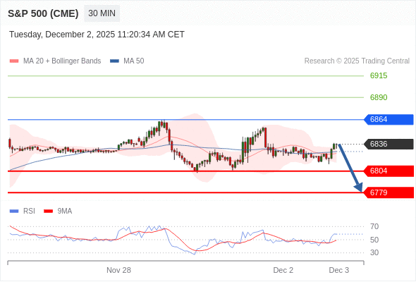 在 6864 之下,看跌,目标价位为 6804 ,然后为 6779 。