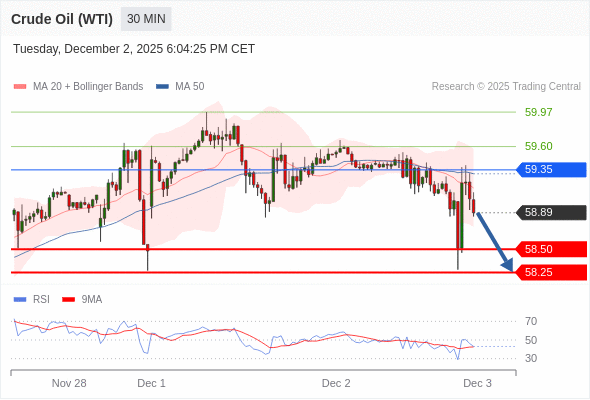交易策略: 在 59.35 之下,看跌,目标价位为 58.50 ,然后为 58.25 。
