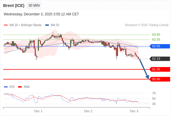 在 62.95 之下,看跌,目标价位为 61.55 ,然后为 60.95 。