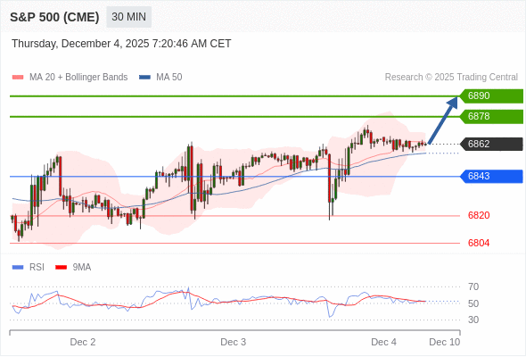 在 6843 之上,看涨,目标价位为 6878 ,然后为 6890 。
