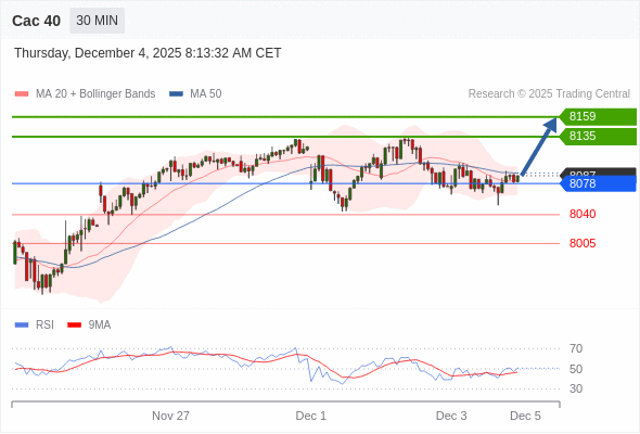 在 8078 之上,看涨,目标价位为 8135 ,然后为 8159 。