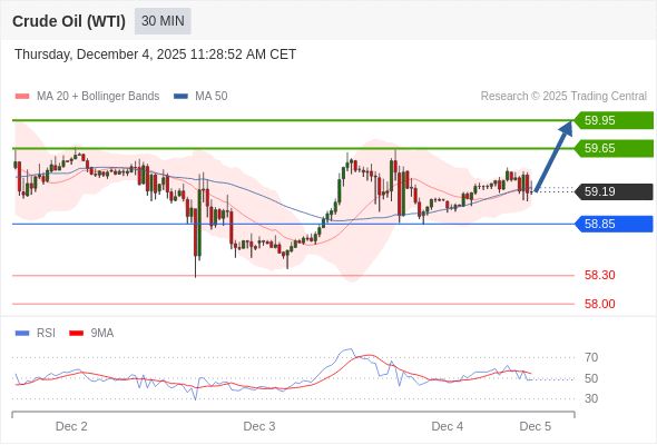 在 58.85 之上,看涨,目标价位为 59.65 ,然后为 59.95 。