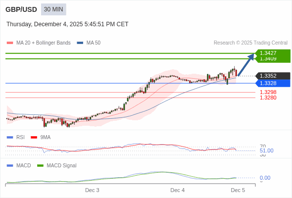 交易策略: 看涨,当 1.3328 为支撑位。